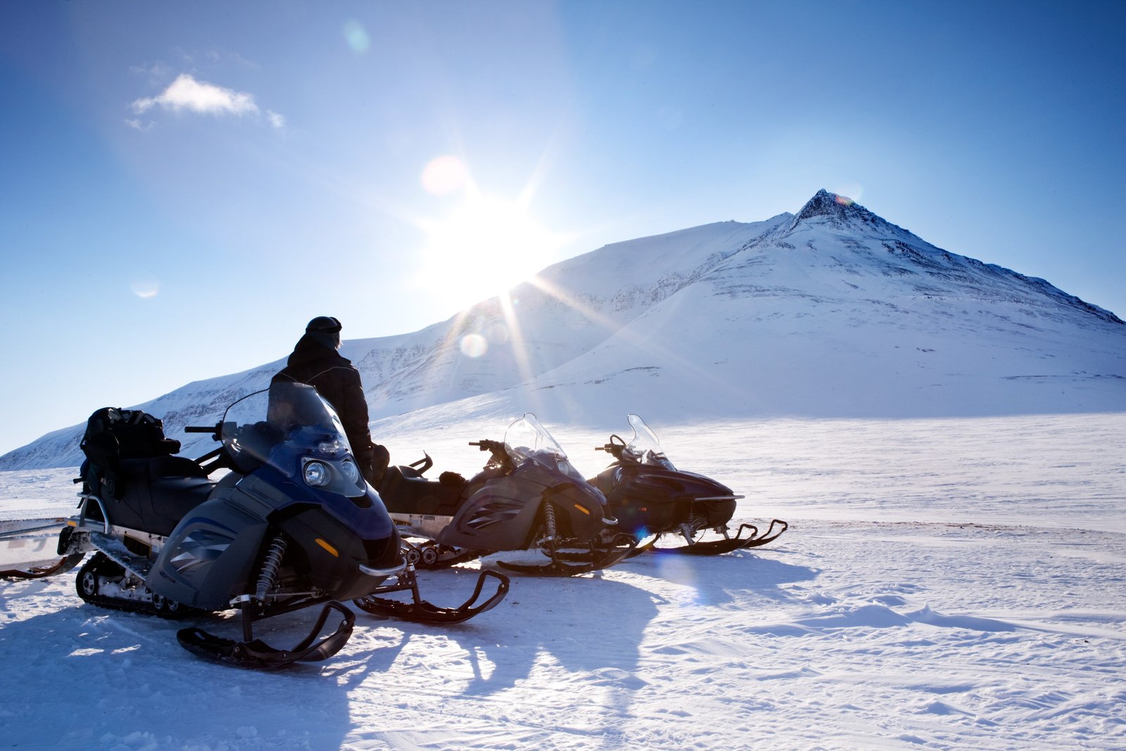 Conducido por el guía en una moto de nieve, el trineo se desliza por el paisaje